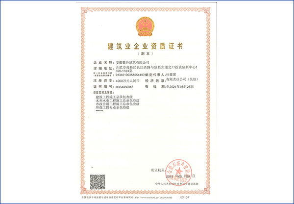 建筑业企业资质证书(一)